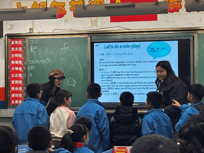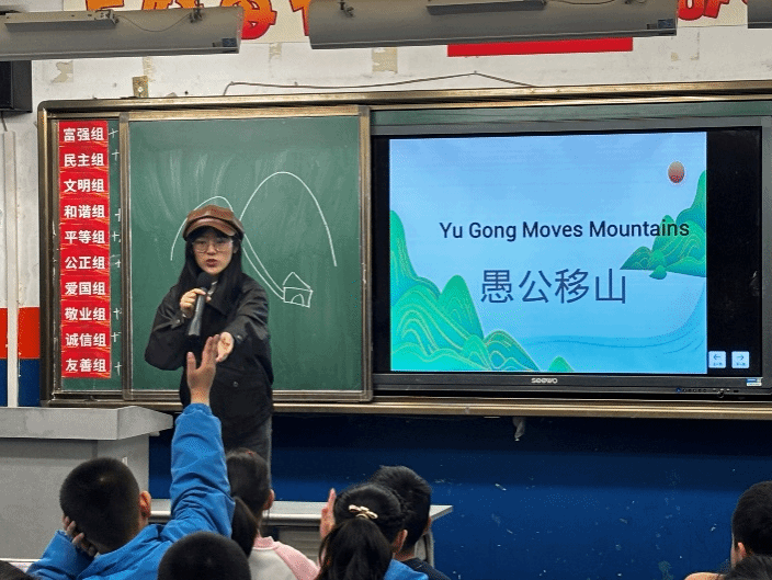 2024年12月4日,必赢官网教师崔琳指导2024级学科英语研究生丁佳仪、杨玉欣、张桐在西安市灞桥区东城第一小学三年级12班开展了一次英语绘本教学活动,绘本内容为《愚公移山》,这是必赢官网学科英语研究生开展教学理论和教学实践融合的创新尝试。