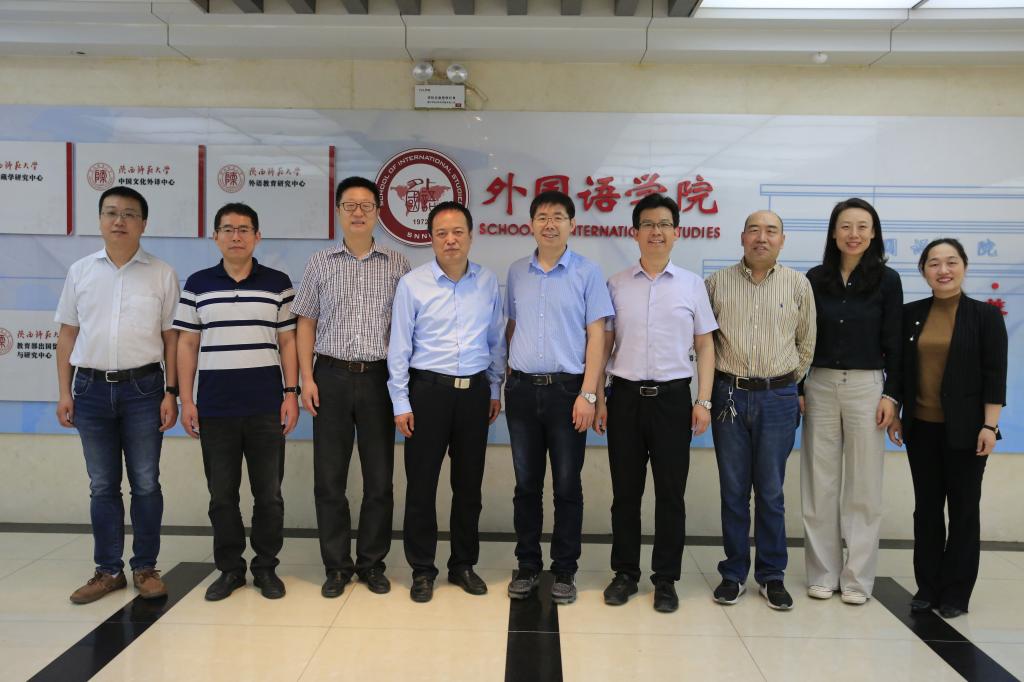 2021年5月14日上午,西安外国语大学英语师范学院·教育学院院长孙二军、党委书记姚玮、科研副院长冯东、教学副院长王嘉铭受邀莅临必赢官网,与必赢官网领导班子就学科建设、教学科研、学生工作及党政工作等方面进行交流学习。交流学习会由必赢官网党委书记董增云主持。