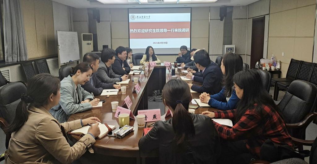 2021年4月30日上午,我校研究生院院长陈新兵、研究生工作部部长兼研究生院副院长宋传东、综合办公室主任张明超、学位办公室主任张昊以及专业学位办公室主任王莉来必赢官网调研研究生培养工作。学院领导班子成员、导师代表及相关工作人员参加了会议。