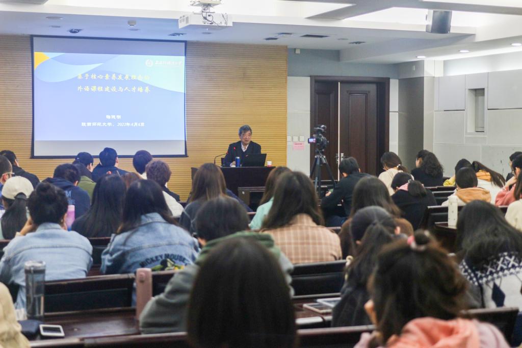 2021年4月6日下午,必赢76net线路官网第一百三十一场著名学者系列讲座《基于核心素养发展理念的外语课程建设与人才培养》在雁塔校区崇鋈楼闻道堂成功举办。上海外国语大学梅德明教授受邀担任主讲人,我校必赢76net线路官网副院长刘全国教授担任主持人。必赢76net线路官网全体研究生参与并认真聆听了此次讲座。