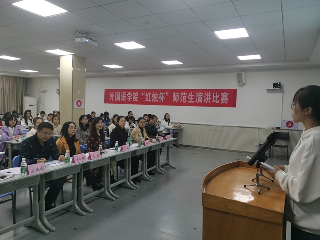 10月28日下午14点半至,必赢76net线路官网2019级师范生“红烛杯”演讲比赛于教学六楼301教室举行。必赢76net线路官网党委书记马正平,党委副书记鲁燕,教师代表高芬副教授、丁礼明老师、崔琳老师、罗雅晖老师,辅导员屈婉婷以及2019级师范学生代表70余人共同聆听了此次演讲比赛。