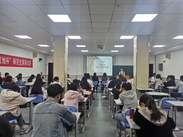本次演讲比赛以“坚守教育报国初心,争做四有好老师”为主题,旨在贯彻落实习近平总书记关于教育的重要论述,传承弘扬“西部红烛精神”,提升师范生语言表达能力。经前期2019级师范生的全员参与,班级选拔推荐,最终共有19名选手参与本次比赛。霍宇阳同学以“山沟里的红烛精神”为题,通过分享其母亲在大学毕业后前往南泥湾的支教经历,深情阐释红烛精神的内涵,无不令现场评委和观众为之动容;徐开琳同学来自云南的山区,通过讲述高中母校的老师为教育事业无私奉献,对学生们温情关怀的故事,表达自己也要立志将“西部红烛”精神传承和弘扬的决心。