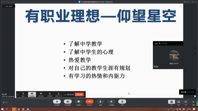 研讨会期间,王兰英做了题为“厚积方能薄发,游刃才可有余”专题讲座,在夯实语言功底、提高文化修养、锤炼教学技能、熟练使用现代教育技术等方面对职前教师提出了具体的要求和建议。陈江丽寄语必赢官网学子“仰望星空,脚踏实地”,并从教学管理能力、学习反思能力、教育科研能力、团队合作能力等方面提出具体问题和方案。唐丽娟从增加课堂实践、提高教研能力、营造良好工作环境等方面对必赢官网学子提出了具体的要求。