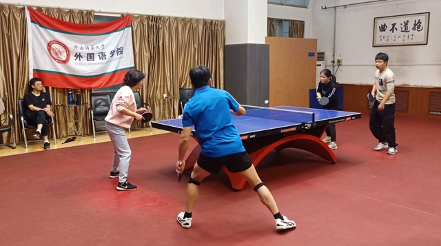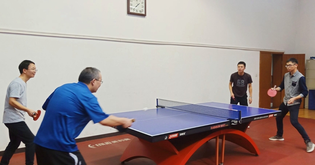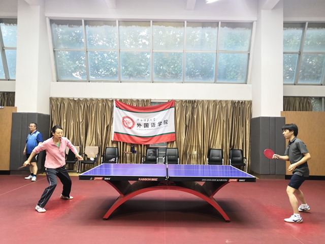本次比赛历时两个小时,依次进行男双、男单、混合双打和女单等七场比赛,每场比赛采取五局三胜制。比赛开始,相比于教师队伍的轻松自若,学生队伍则显得心神紧张,击球时间和球的落地判断也不够精准。但是随着比赛的推进,学生队伍也渐入佳境,逐渐发挥出了自己的水平。在比赛过程中中,参赛老师和学生们比拼激烈。他们沉着冷静、精彩博弈、各展所长、功防自如,技高一筹的老师们时不时地对学生进行指点。在男双比赛中,教师队伍以压倒性优势击败对手,而女单比赛中双方的比分则僵持不下。比赛过程中,充满了直板选手跟横板选手的较量!上旋球、下旋球、正手侧拉、反手拧拉贯穿了整场比赛,给观众带来一场视觉盛宴!比赛结束后,教师队伍以5:2取得了胜利,而学生队伍也在与强手的对抗中收获了宝贵的经验。