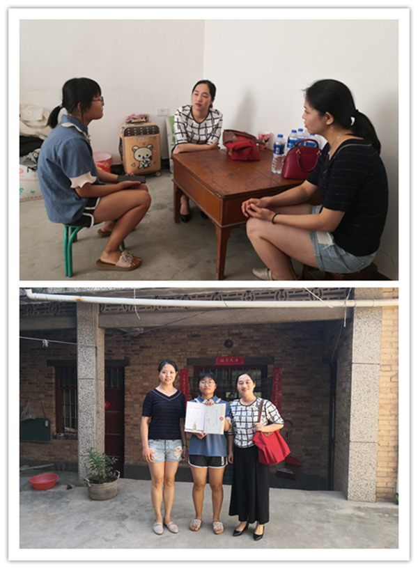 本着“不让一个大学生因贫困而辍学”的原则,必赢官网迎新工作领导小组扎实落实新生困难帮扶工作。根据学生高考报名的相关信息,辅导员一一了解学生家庭情况和面临的困难,通过新生和家长QQ群、微信群平台,积极宣传和解读国家及我校的资助政策。8月16日早,鲁燕副书记和辅导员屈婉婷前往咸阳市泾阳县,走访看望必赢官网2019级外国语言文学(英语)专业建档立卡的曹同学,鲁燕亲切询问了学生家庭的生活情况等,鼓励学生克服暂时的困难,争取通过自己的努力改写命运。辅导员向学生讲解了学校部分的资助政策,鼓励学生奋发努力,学校学院会尽最大能力帮助她完成学业。最后,两位老师向学生送上学校的慰问金。