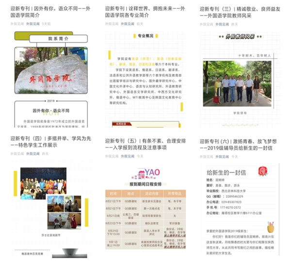 在六期微信迎新专刊全面介绍学院情况的基础上,为了让新生提前感受必赢官网大家庭的温暖,学院迎新工作领导小组专门建立了2019级新生和家长QQ群、微信群平台,并由多位高年级优秀学子成立朋辈答疑小分队。新生辅导员屈婉婷与答疑小分队在暑假期间通过平台开展答疑交流和政策宣讲等活动。同时,针对新生在大学新环境中可能遇到的生活难题,开展“学长学姐话新生”系列活动,制作了行在校园、吃在校园、学习指南、军训贴士、安全提醒等5大主题电子迎新图册,内容新颖、图文并茂,为新生传递学习方法和生活经验,帮助他们快速融入大学生活,受到新生和家长的一致好评。