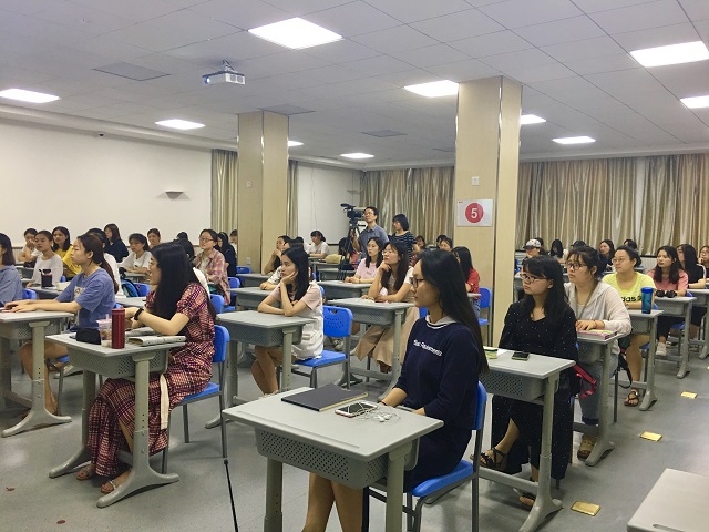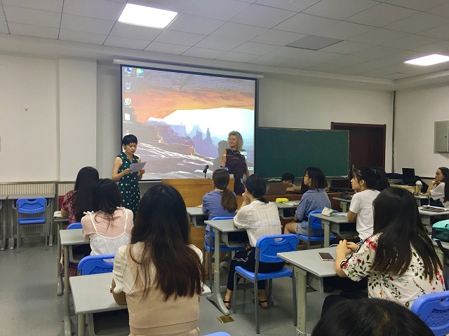 巢玥老师首先向在座的各位同学介绍了Michal Gavrin教授的个人情况,接着Michal Gavrin教授为学生们带来一场古代语言与传统视角的探索分享。她结合个人求学及生活经历,讲述探索神话以及历史如何潜移默化影响个人命运,她在个人写作风格时谈到,写作是思维交融与思维碰撞的过程,这一过程不是短暂的,而是需要长期积淀的。此外,她结合传统文化思维,从写作的目的性和影响力两个方面,为同学们进行文本解读。
