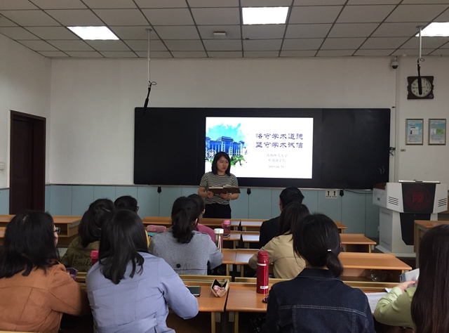 为深入贯彻落实中国科协、教育部《关于开展科学道德和学风建设宣讲教育活动的通知》精神,进一步加强必赢官网研究生科学道德和学风建设,4月29日下午, 必赢76net线路官网“恪守学术道德,坚守学术诚信”主题座谈交流会在教学四楼4403举办。必赢官网2018级全体学术型研究生参加,座谈会由研究生辅导员董洁主持。