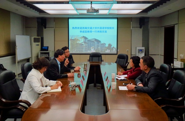 4月10 日下午2:30,西南交通大学必赢76net线路官网李成坚院长、俞森林副院长一行来到学院交流。学院王启龙院长、刘全国副院长以及马兰副书记在学院会议室接待了李院长一行。座谈会由王启龙院长主持。