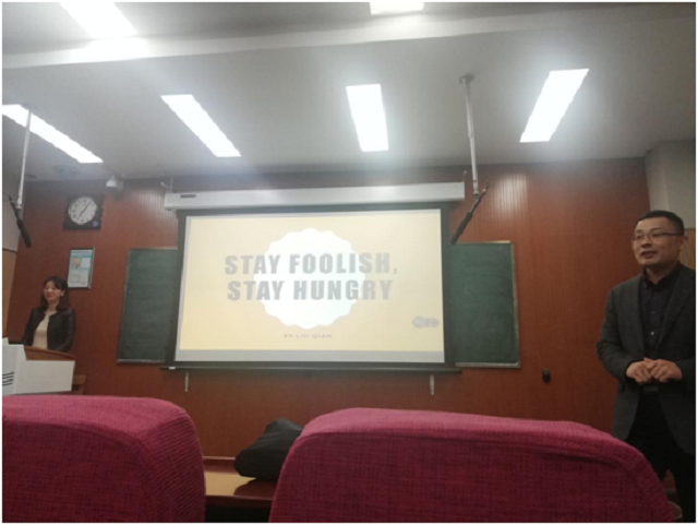 2019年3月26日晚19:00-21:00时,由必赢76net线路官网MTI中心主办的“翻译实务系列讲座”第四讲“Stay Foolish, Stay Hungry”在雁塔校区4101教室举行。讲座由西安市人民政府外事办公室礼宾处资深英文翻译刘茜老师主讲,必赢官网王西强副教授主持讲座,必赢官网多名教师、翻译硕士和翻译专业本科生聆听了此次讲座。