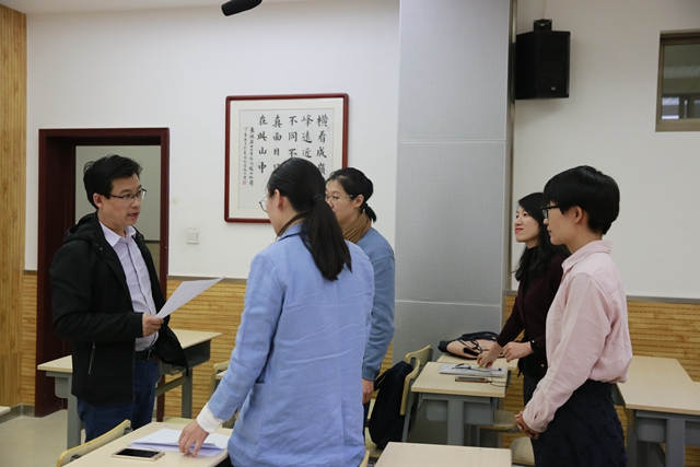 各位评委对每位参赛教师都一一做了点评,孙院长提出以下几点建议:承担专业语言课的老师,应尽量多的使用working language,现在的问题是课堂上使用的汉语太多;每一节课是一个结构完整的篇章,需要认真准备每个环节; 板书有点少,过多的依赖PPT,引导学生探讨知识,而不是被动的接受;在完成整个教学过程中,把学生放在第一位、中心的位置,互动的效果会更好。有效、自然的互动少,要尽力引导学生进入课堂进行积极主动的探索知识。最后,希望年轻教师们能把所学所研转入课堂教学,在驾驭课堂上要多下功夫。