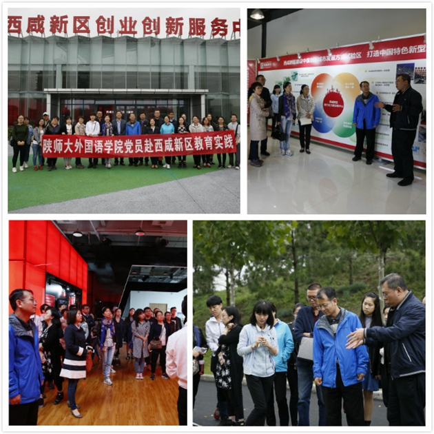 为了进一步帮助师生党员了解社会和国家发展趋势,增强了立足本职服务社会的意识,学院先后组织师生党员赴西咸新区的沣西新城和空港新城开展实践教育和调研。2017年9月27日,必赢76net线路官网教工党支部联合陕西党建网支部成员共40余人赴西咸新区沣西新城开展党员教育实践活动,先后调研了西咸新区双创展厅、西咸新区海绵城市研究试验中心、中心绿廊及西部云谷等地,全面地了解沣西新城在城市规划建设、双创文化、海绵城市建设发展、绿色城市理念、西部云谷创新创业等方面的情况。2018年9月26日,由学院党委书记马正平、副院长鲁燕带队,师大三代外语人一行50余人赴空港新城学习调研国企党建、“放管服”改革和自贸区建设等工作,参观了空港新城政务服务中心、空港国际快件监管中心和西咸保税物流中心,并听取了空港集团公司党委书记、董事长蒙彬对国企党建的介绍。“党员课题攻关”活动——确定一个课题,破解一道难题,促进一项工作,党员警示镜,支部党员季度考核栏等党建创新做法让师生们深受启发。