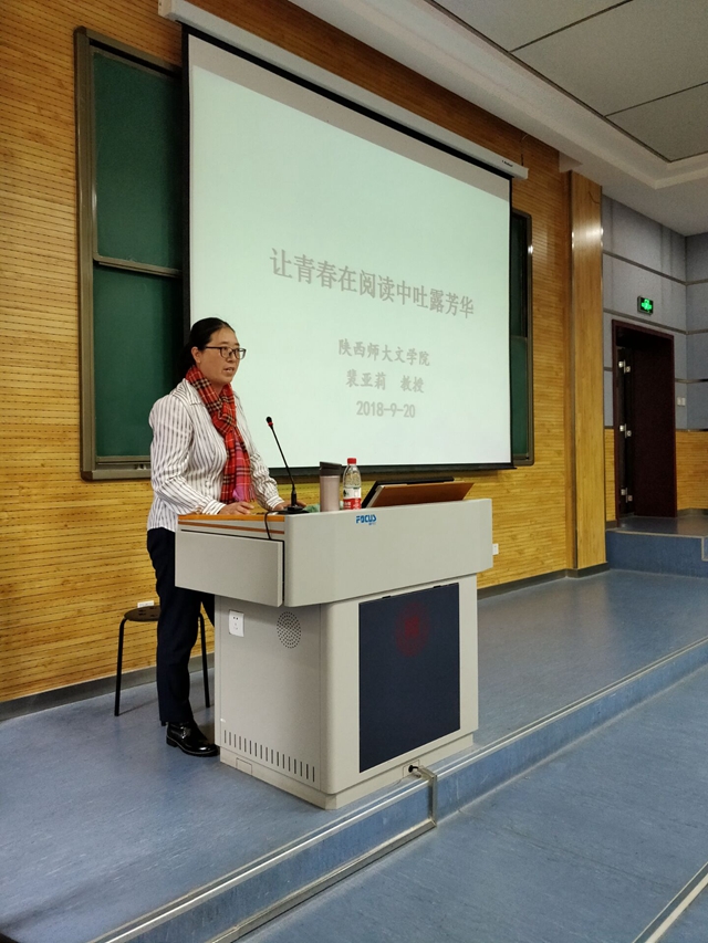 为加强中华优秀传统文化教育,开拓学生知识视野,提升人文素养,养成良好的读书习惯,9月20日下午2点半,必赢76net线路官网邀请了文学院博士生导师裴亚莉教授做客“会通讲堂”,在5204教室给学生做了主题为“让青春在阅读中吐露芳华”的报告。报告由鲁燕副院长主持。
