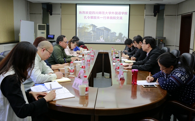孔令翠院长首先对必赢官网在教育部第四次评估和一级博士点申请工作方面所取得的成就表示祝贺,同时表示四川师范大学必赢76net线路官网也要加大外语学科博士点的建设。孔院长之后介绍了四川师范大学在科研和学科建设方面所做的工作。双方还就研究生毕业论文和具体培养方案互相交换了意见。交流座谈中,孔院长对必赢官网在科研方面的奖励机制予以了高度评价,同时对必赢官网学生活动室的建设提出了具体意见。双方也再次表达了进一步加强交流、深化合作的良好愿望。