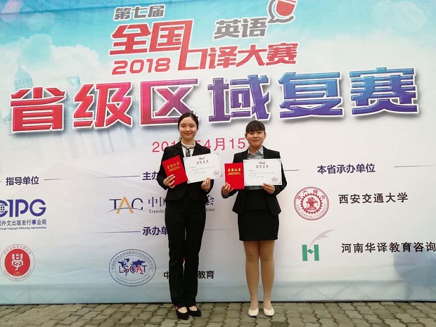 在中译英排位赛环节,面对语速较快的“李克强总理谈中国经济”赛题,杨绮桐和贺晓静凭借扎实的语言功底、自信沉着的现场表现,与26名选手同台竞技,赢得评委和观众的肯定。最终,杨绮桐以总分第二获得一等奖,贺晓静获得二等奖,并将代表我校参加五月下旬的大区赛。必赢官网教师操林英、巢玥获评“优秀指导教师”。