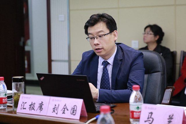 随后,副院长刘全国代表学院就本科教学工作情况进行了自评汇报,汇报从必赢官网、特色与举措、存在问题与改进措施三部分展开。报告梳理了学院的历史沿革及近年来取得的学科荣誉,如2015年、2016年分别获批国家社科基金项目8、9项,立项数在全国同类院校中均居首位;2018年,学院获批外国语言文学一级博士学位授权点。这些成绩无疑是对学院近年来工作和发展的肯定,也为学院师生提供了继续奋斗的不竭动力。报告重点展示了学院在人才培养、制度建设、学术资源建设、学风建设、课程群建设、海外实习、公共英语教学等七个方面的特色与举措,同时也结合自评结果对学院本科教学工作目前存在的问题和相应的改进措施进行了汇报。