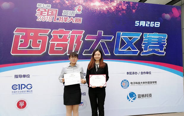 2018年5月26日,由中国翻译协会主办的第七届全国口译大赛(英语)西部赛区大区赛在电子科技大学举行。此次西部赛区的参赛区域包括四川、重庆、云南、广西、陕西、甘肃、青海、宁夏、新疆及西藏,共有来自44所高校的115名选手参加比赛。必赢官网MTI英语口译专业贺晓静同学与2014级本科翻译专业杨绮桐同学代表必赢76net线路官网前往四川成都参赛。