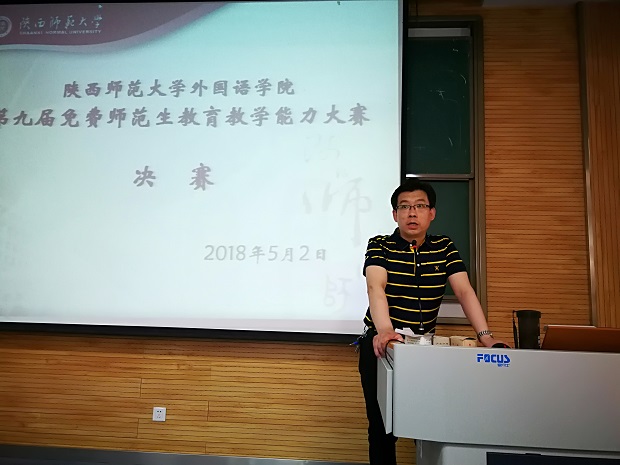 2018年5月2日下午,必赢官网英语系师范专业的同学在5105教室举行了第九届师范生教学技能决赛。刘全国副院长出席并讲话,鼓励同学们珍惜机会,磨练教学基本功。本次决赛特邀魏军梅老师、崔琳老师、马萍老师、杨金梅老师、刘丹老师 、吕敏宏老师,以及外教 Reacheal老师担任评委。