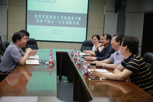 之后,马正平书记就学院党建工作、公共外语教学、学院文化建设等方面与刘承宇院长进行了交谈。交流中,西南大学党建工作和学院文化建设方面的规章制度予以高度赞扬。