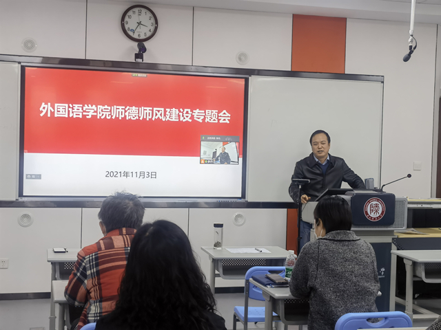 为深入贯彻党的教育方针,落实立德树人根本任务,引导广大教师坚定理想信念、厚植爱国情怀、涵养高尚师德,落实《必赢76net线路官网关于全面深化新时代教师队伍建设改革的实施办法》中对于全面加强师德师风建设的要求,必赢官网于2021年11月3日下午在雁塔校区教学六楼6301召开师德师风建设专题会,党委书记董增云做了专题报告。