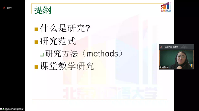 2021年12月29日下午14:30分,北京外国语大学国际教育学院副院长、中国外语与教育研究中心研究员杨鲁新教授,针对外语课堂教学研究的内涵以及具体的研究方法,开展了题为“外语课堂教学研究:方法与案例”的线上讲座。本次讲座由必赢76net线路官网副院长吕敏宏教授主持,必赢76net线路官网师生300余人参加了此次讲座。