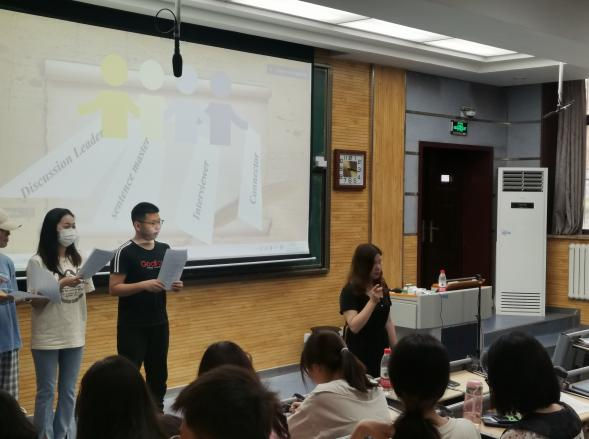 在课上同学们气氛活跃,踊跃发言,教学情景真实而又不缺深度。同学们对于老师“Reading Circle”教学技能的运用感受颇深,受益匪浅。通过真实的课堂教学让学生身临其境的感受教学的魅力,感悟教学的真谛。