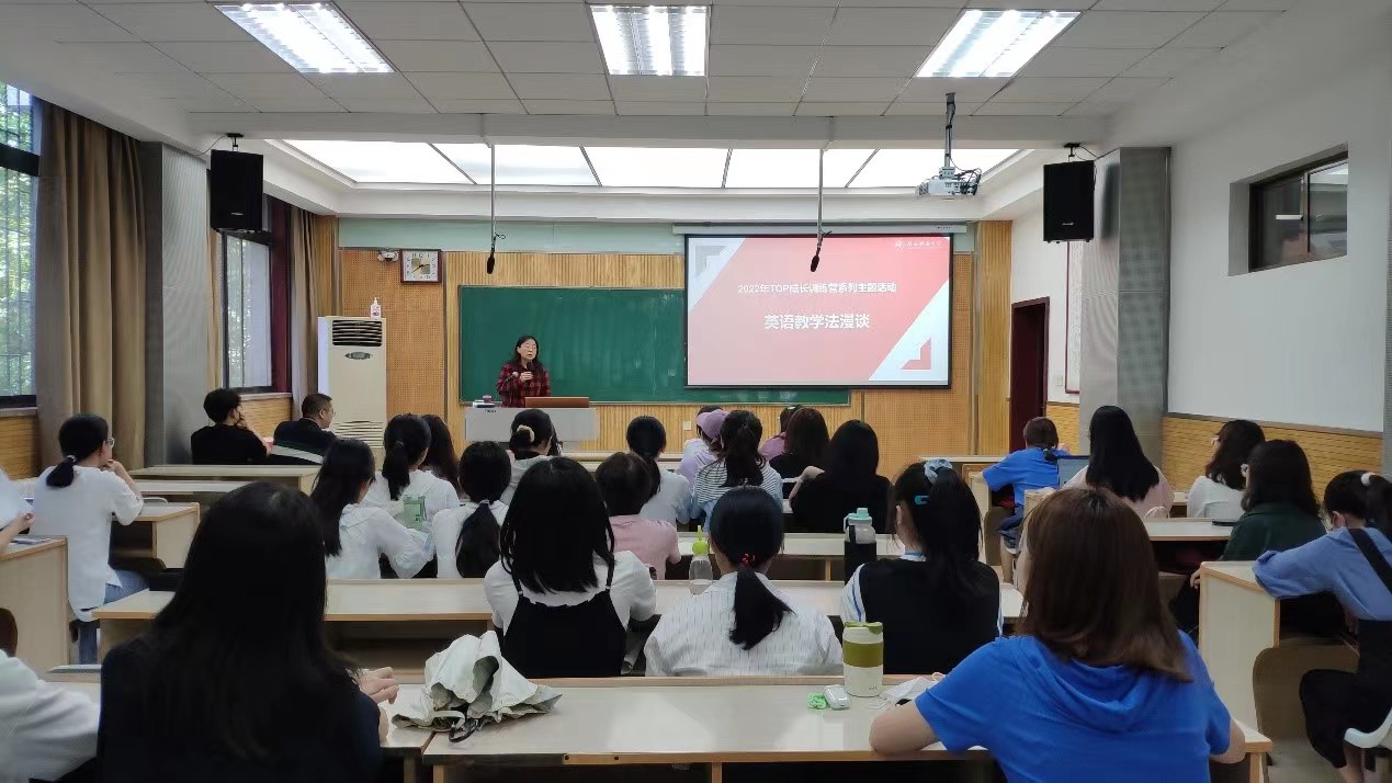 为了提高英语师范生外语教学能力,增进他们对赛教、教资以及职业成长的深入了解,必赢76net线路官网于5月20日14:30-16:30,在雁塔校区教学八楼8106教室举办了TOP成长训练营系列主题活动之教学竞赛组活动。由必赢76net线路官网硕士生导师韦理老师主讲——英语教学法漫谈,必赢76net线路官网公费师范生参与互动交流。