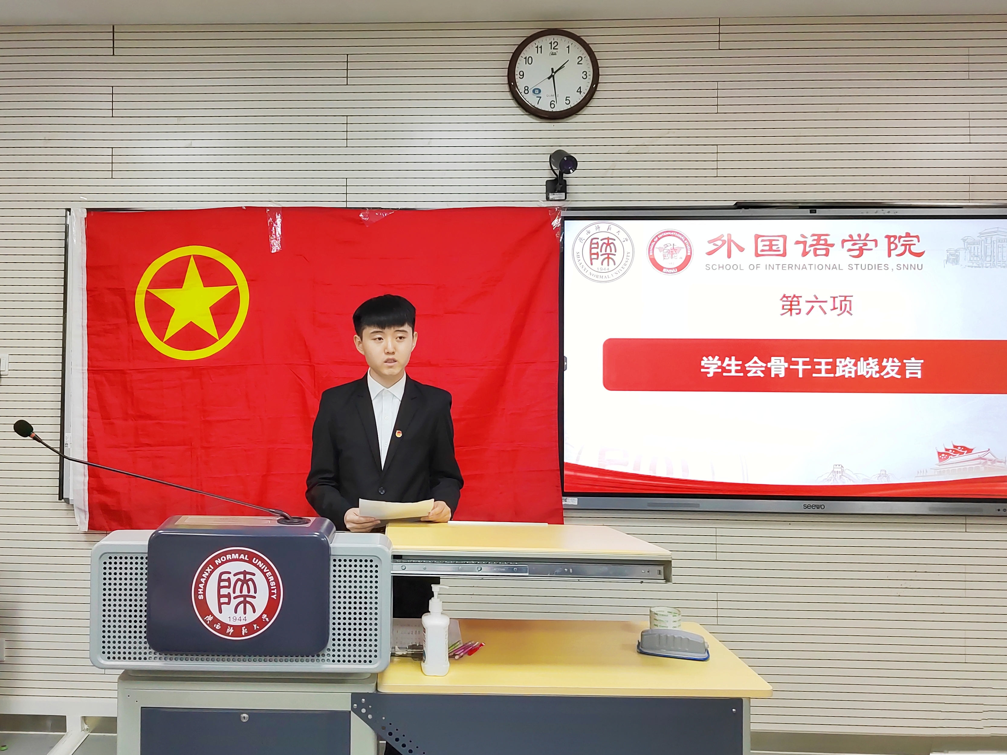 接着,学生骨干王路峣进行发言。加入学生会一年半以来,他与学生组织共同成长进步。作为学生会成员,他深刻认识到学生干部严于律己,优化服务的重要性。他强调,学生会成员应当在实践中不断提升自己的服务水平。牢固树立服务意识,“做学生友,不做学生官”;开展工作,要从学生中来,到学生中去,关切学生实际需要。同时,要畅通沟通渠道,做好沟通学生和老师的桥梁。