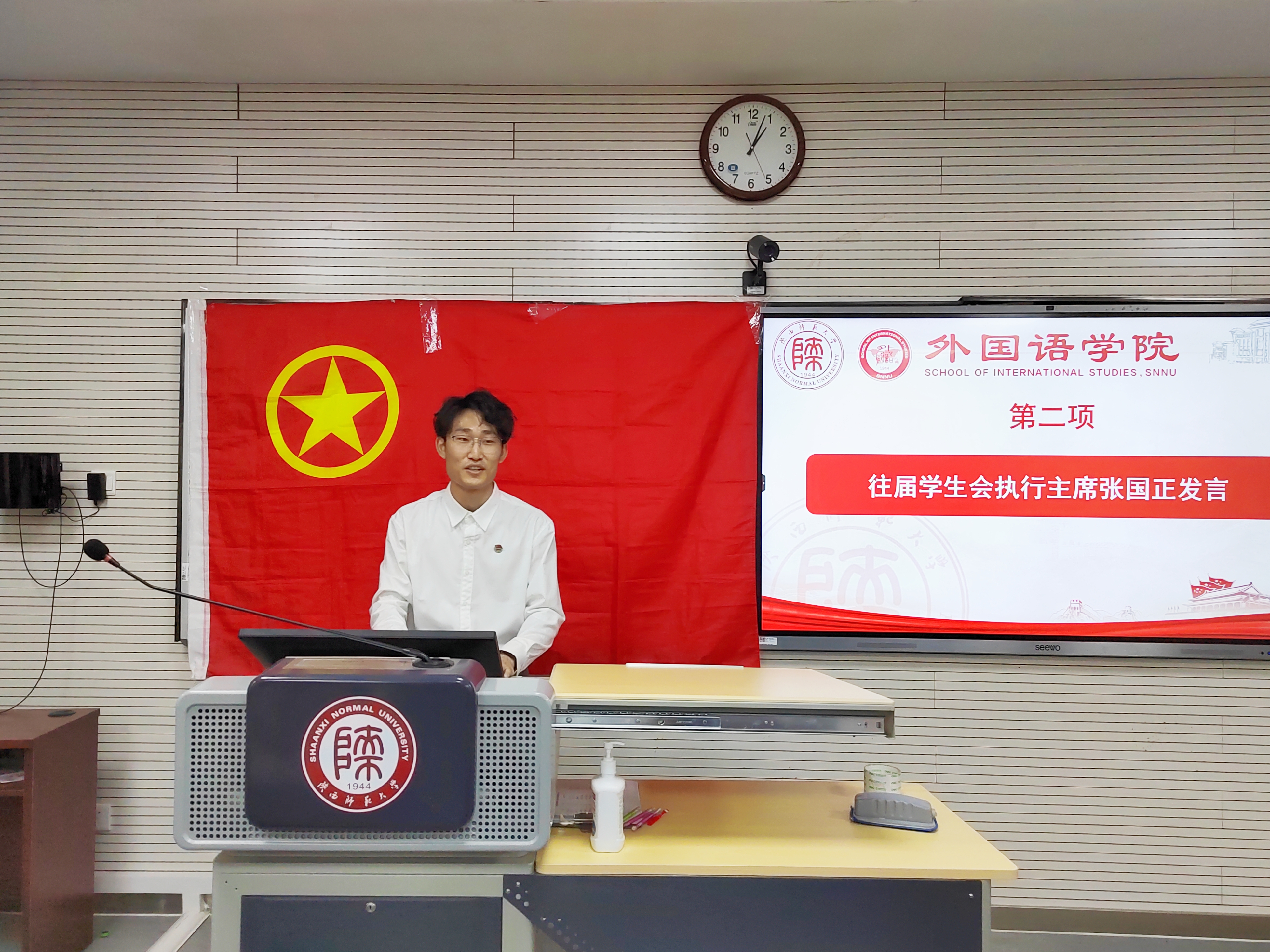 首先,往届学生会执行主席张国正进行分享。他谈到,在学生会工作的三年是创造幸福,收获幸福的三年。同时,他鼓励新一届学生会成员,在掌握扎实专业知识的前提下,积极投身到学生会工作中去,在实践中勤思苦练、稳步提升,在成长中不断进取。