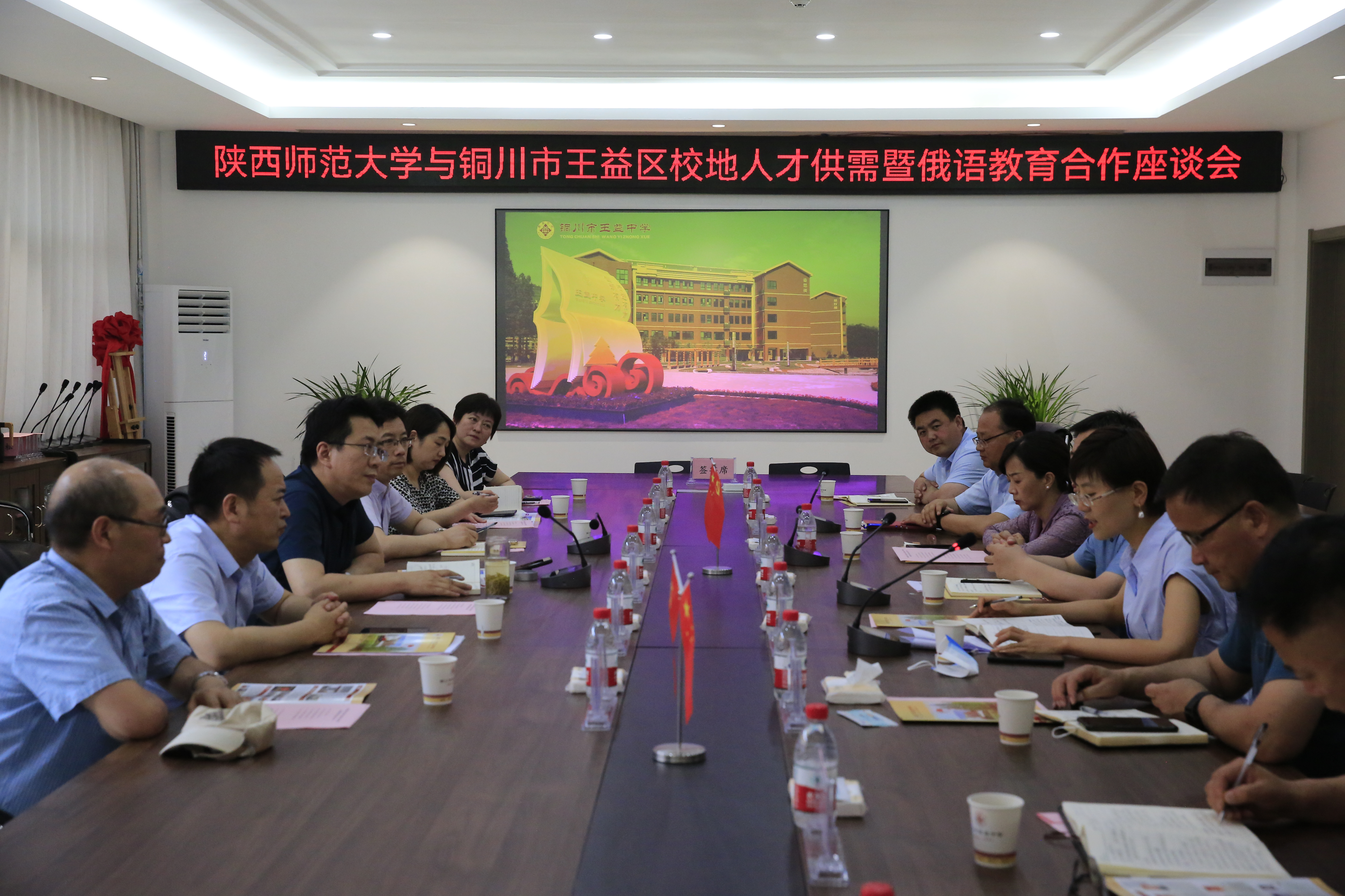 2022年6月21日,我校与铜川市王益区校地人才供需暨俄语教育合作座谈会在铜川市王益中学举行,我校副校长任晓伟、必赢76net线路官网院长刘全国、党委书记董增云、副院长孙坚、副书记鲁燕、俄语系主任孟霞,铜川市王益区区委副书记刘鹏、人民政府副区长南海、教科体局局长刘秋丽、王益中学党委书记、校长张新奇莅临参会。会议由铜川市王益区人民政府副区长南海主持。