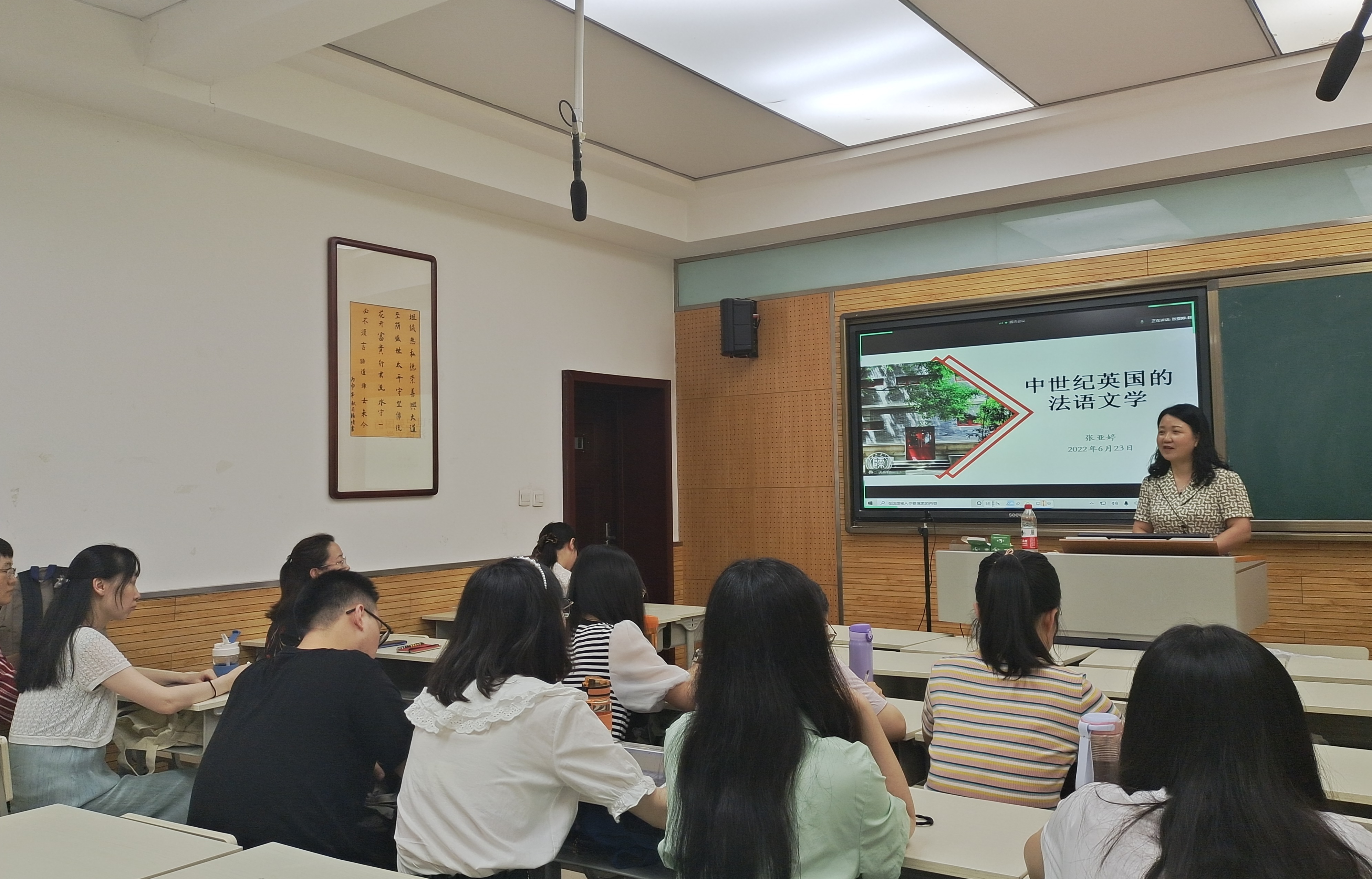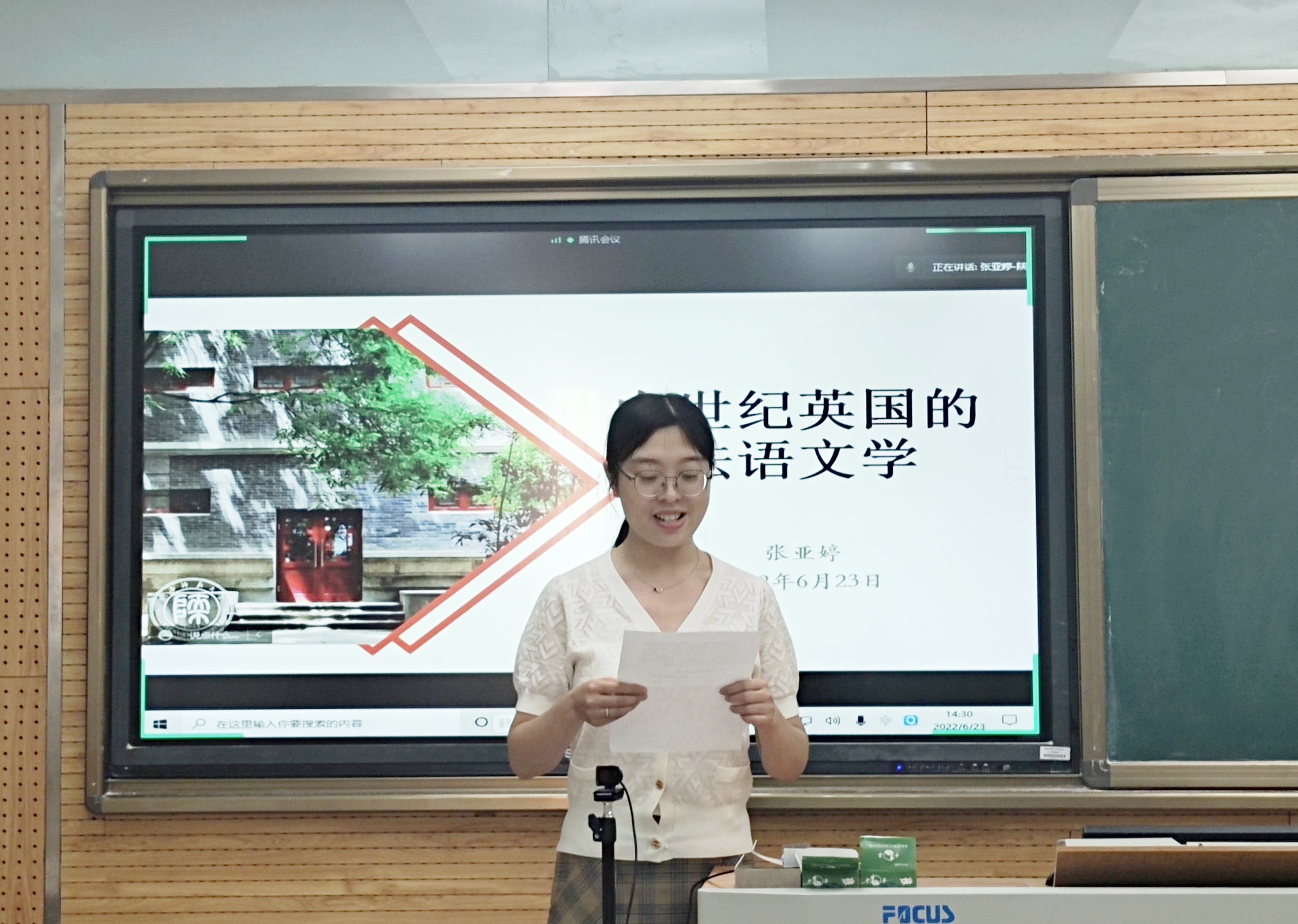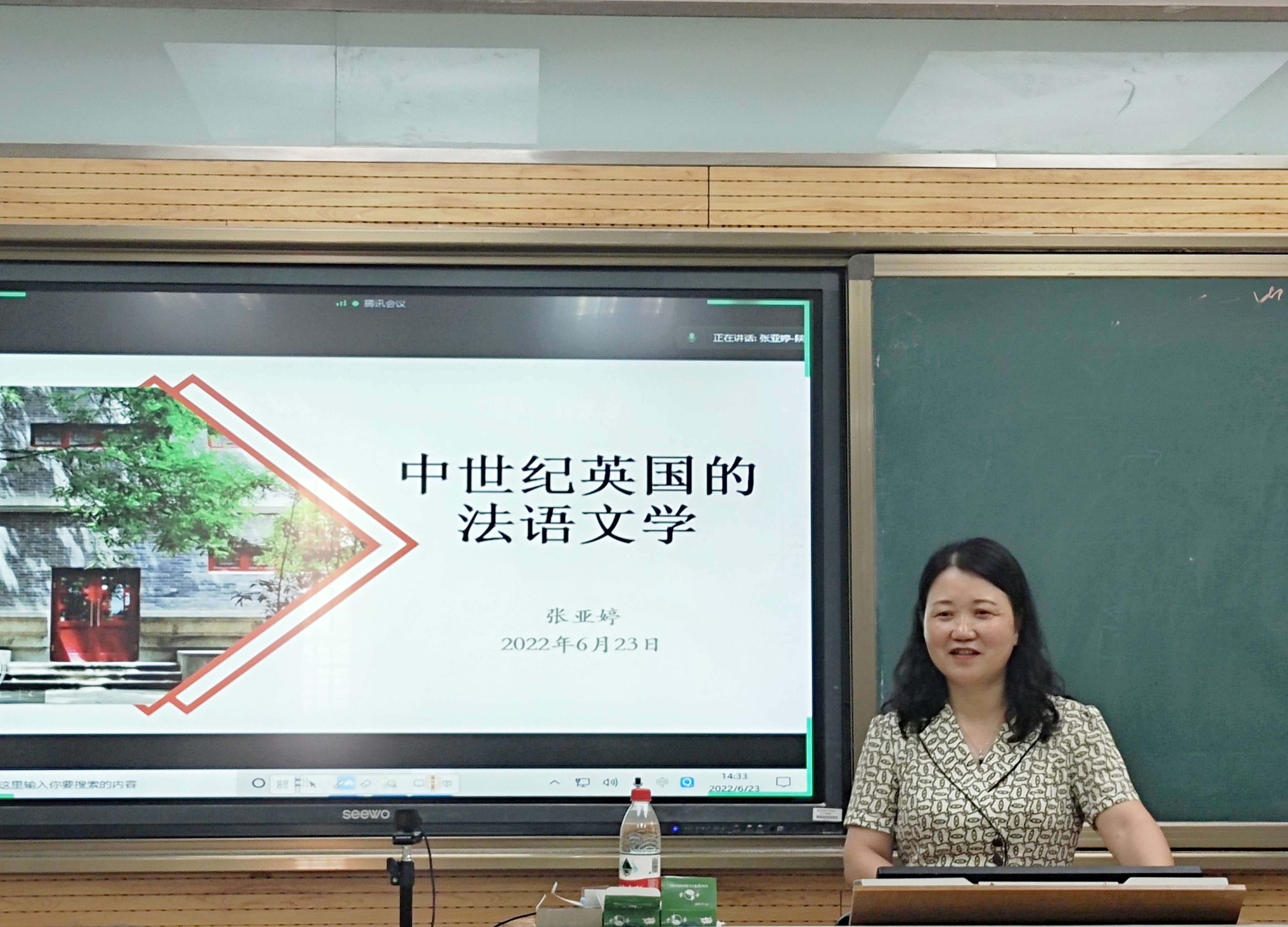 为推进外国文学专业教学水平发展,提高学生文学素养、创新意识、写作与表达能力。6月23日14点30分,必赢76net线路官网学院英国文学研究团队于教学五楼5108开展了题为“中世纪英国的法语文学”的专题讲座。张亚婷教授担任主讲人,原玉薇博士主持讲座,必赢76net线路官网教师及文学专业研究生参与讲座。