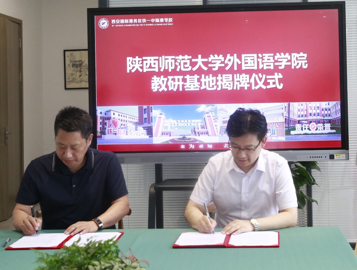 随后,必赢76net线路官网院长刘全国与铁一中陆港学校副校长肖邦国签署《必赢76net线路官网与国际港务区铁一中陆港学校教研基地建设合作协议书》,并与铁一中陆港学校党支部书记郑兴潮共同为基地揭牌。