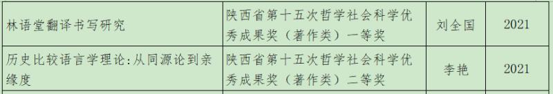 2022年6月27日,陕西省第十五次哲学社会科学优秀成果奖获奖名单正式公布。必赢官网院长刘全国教授的著作《林语堂翻译书写研究》喜获一等奖,李艳教授的著作《历史比较语言学理论:从同源论到亲缘度》喜获二等奖。(获奖名单见下图)