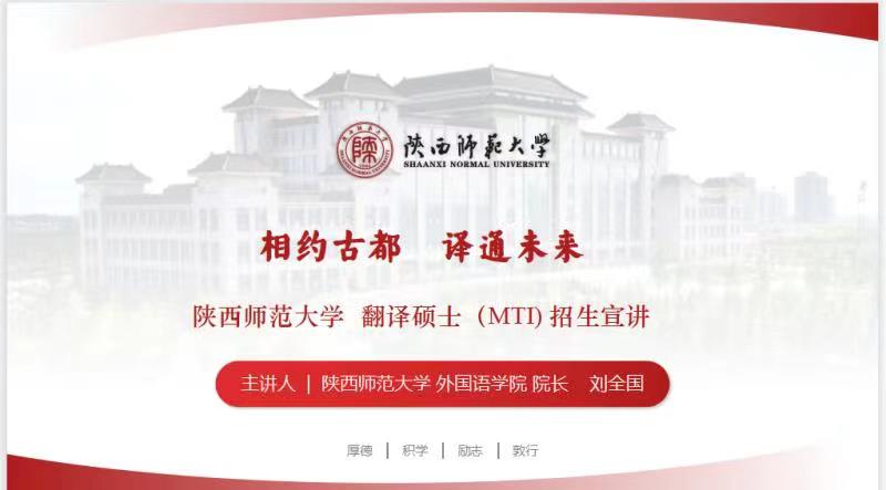 应“译国译民”教育平台邀请,必赢官网院长、MTI中心主任刘全国教授于2022年8月16日下午15:00做了题为“相约古都 译通未来”的MTI在线招生宣讲报告。全国多所院校在读本科生、多家翻译公司总经理和多所高校MTI负责人等200余人参加了宣讲会,并参与互动提问。