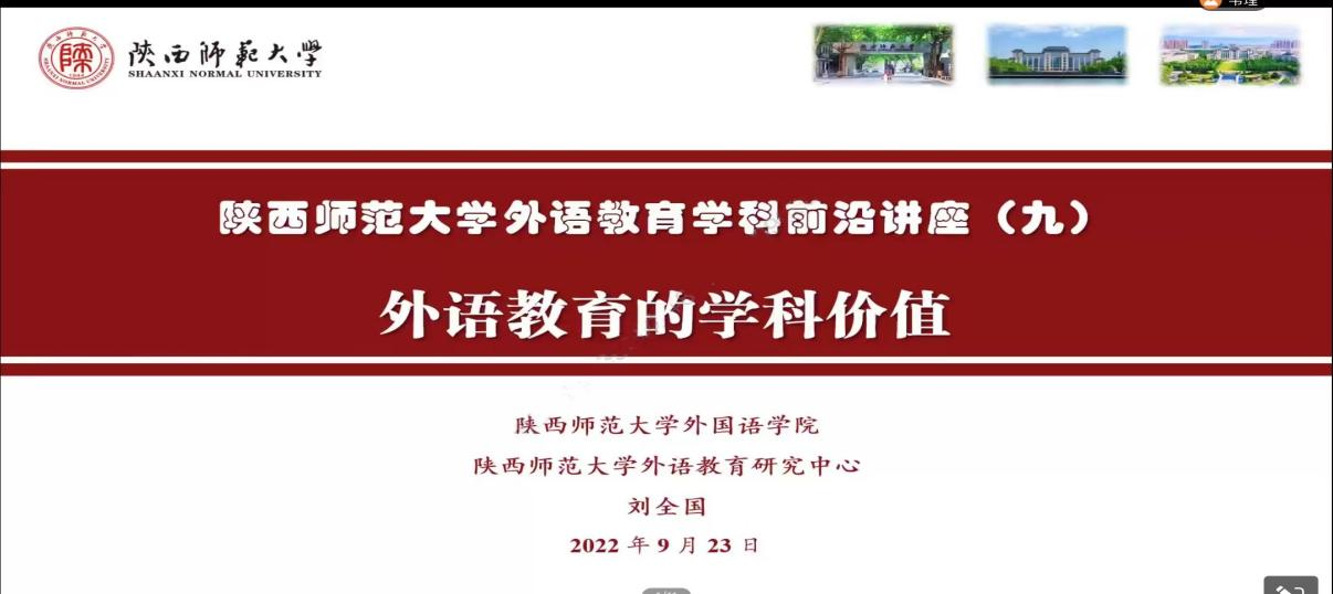 为了提高必赢官网学科教学(英语)专业研究生的外语教学能力,加强学生对外语教学学科价值的理解,必赢76net线路官网于9月23日下午在腾讯会议线上开展了外语教育学科前沿讲座第九讲——外语教育的学科价值。本次讲座由必赢76net线路官网院长刘全国教授主讲,会议由韦理老师主持。必赢76net线路官网2022级和2021级学科教学(英语)专业教育硕士聆听了讲座。