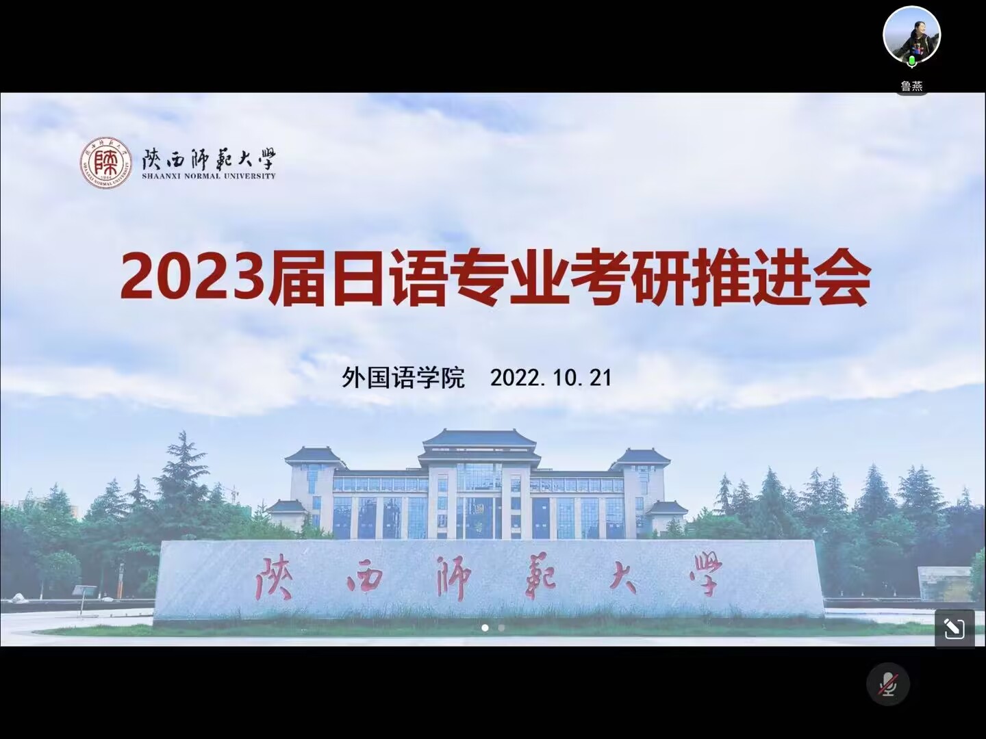 为树立同学们的考研信心,加强考研同学之间的交流互动,必赢官网于10月21日晚上7点半在线上召开2023届日语专业考研推进会。学院副院长,日语系主任曹婷、党委副书记鲁燕、日语系副主任许赛锋和日语系教师史曼共同参加。会议由辅导员屈婉婷老师主持。