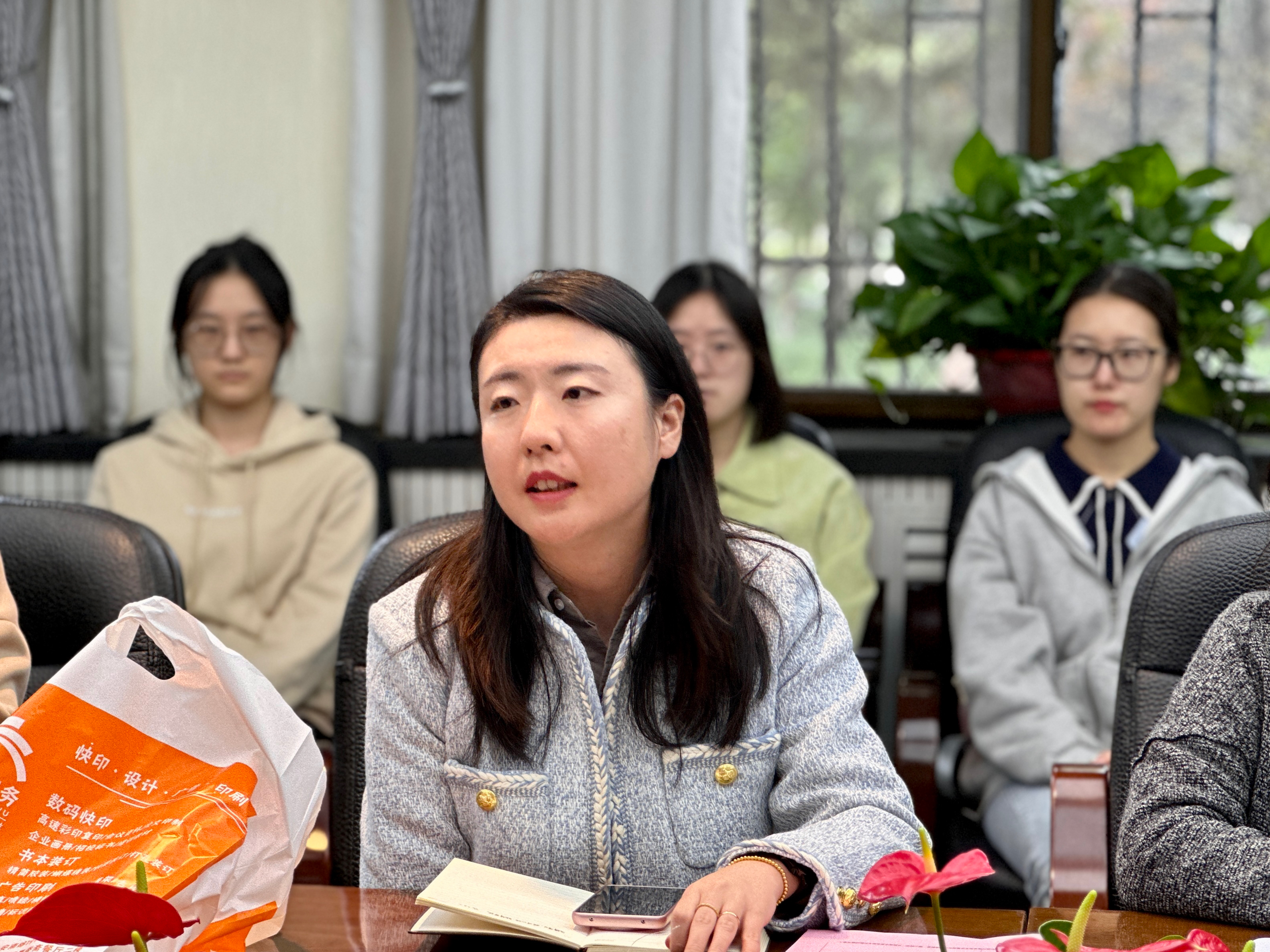 首先,李丹老师介绍了学院党员联系新生宿舍的整体概况,明确此项工作是学院学生党员在预备党员阶段重要的考察环节之一,旨在为学生党员发挥模范作用搭建平台,帮助新生尽快适应学校学习生活,同时也是学院深化党建带团建,团建促党建工作的重要抓手。接下来,她向党员提出联系新生宿舍的具体要求,并鼓励对接宿舍的党员要切实发挥“先锋带头、榜样引领、朋辈帮扶”作用,搭建新老生之间的沟通“桥梁”,引导新生树立强国有我的远大理想,加强新生对学校的归属感、对学院及专业的认同感,树立爱校荣校的深厚情怀,帮助新生尽快转变角色,适应大学生活,养成健康向上的良好作风。