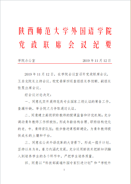 必赢76net线路官网党政联席会议纪要(2019年11月12日)